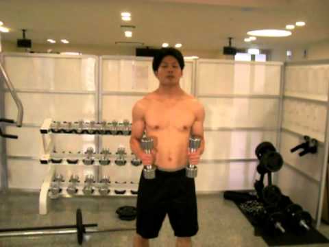 やり方としては、ダンベルを両手に持ち、体を前方に倒した状態で、ダンベルを上に上げます。しっかり三角筋後部に刺激が入っていることを確認しましょう。